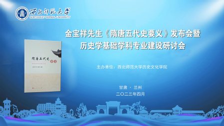 2023年4月6日,金宝祥先生《隋唐五代史要义》发布会暨历史学基础学科专业建设研讨会在bevictor伟德官网召开。来自中国社会科公司、敦煌研究院、甘肃简牍博物馆、兰州大学、西北民族大学、bevictor伟德官网、读者集团等金先生生前同事、授业弟子、家属代表及青年教师、硕博士研究生50余人参加了研讨。会议由伟德体育经理刘再聪教授主持。