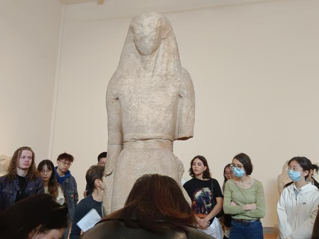 3月24日,同学们在抵达雅典大学的第一周,任课教师Barringer教授带领他们前往雅典国立博物馆,参观众多精美的古希腊陶器与雕塑,现场讲解古希腊艺术。同学们认真学习,并注意到古希腊的彩陶与中国的史前彩陶纹饰的比较研究。两国的古陶器都绘有精美的花纹,纹饰上最大的区别是古希腊彩陶图案由大量的人物以及古希腊神话故事。这样的参观活动,让同学们对古希腊艺术有了更深刻的理解与更直观的感受,并能够举一反三,取得了良好的学习效果。