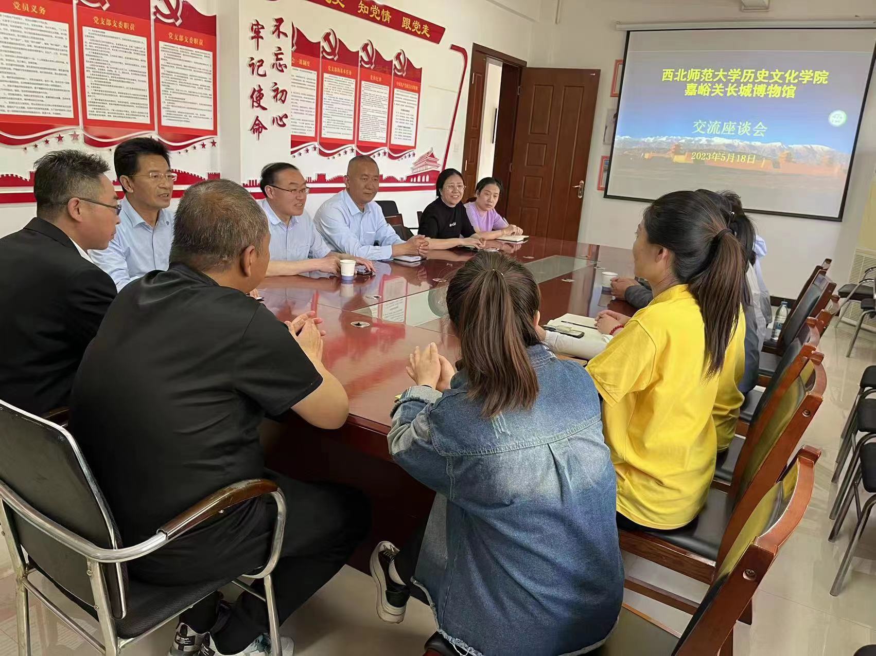 5月18日,师生一行赴嘉峪关长城博物馆,与张晓东馆长以及各部门负责人开展了座谈会,会上,博物馆负责人在历史文化资源调查、博物馆社会教育、博物馆馆藏文物、博物馆取得的科研成就等情况做了详细介绍。张晓东馆长希望能够深化馆校合作,并安排博物馆各部门积极配合研究生在实习期间的相关工作,希望员工们在实践中锻炼与提升。黄兆宏老师详细介绍了伟德体育文博专业的培养工作,对嘉峪关长城博物馆长期以来给予公司实习工作的支持表达了感谢,希望双方能够继续加强在科研和人才培养方面的合作。