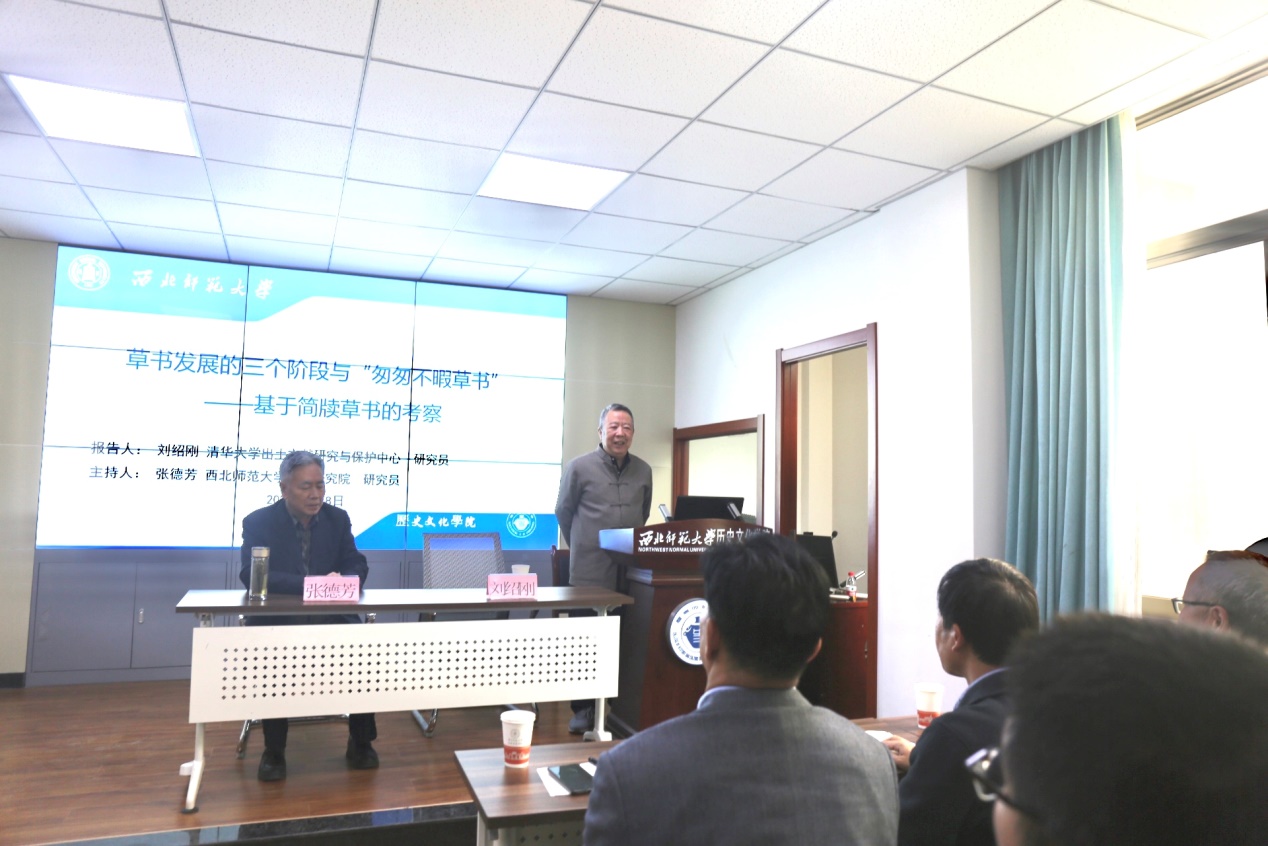 2023年5月8日下午,清华大学出土文献研究与保护中心研究员刘绍刚先生应邀来校作题为《草书发展的三个阶段与“匆匆不暇草书”——基于简牍草书的考察》学术报告。本次报告由bevictor伟德官网简牍研究院研究员、bevictor伟德官网特聘教授张德芳老师主持,伟德体育康智杰书记、魏振龙老师、袁雅洁老师等100余名师生参加了此次学术报告。