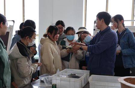 报告开始前,张小宁老师首先对公司师生的到来表示热烈欢迎,并带领师生们参观了南佐遗址现场及文物陈列室。在考古现场,张老师向大家介绍了由9座夯土台围成遗址核心区位置(面积约30万平方米)、由窑洞式建筑组成的普通居住区的概况,同学们因此对南佐遗址有了初步了解;在南佐遗址考古工作站的文物陈列室中,张老师详细介绍了出土各类陶器及陶片遗存,并为同学们分享了文物修复的过程与方法。