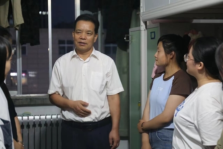 为及时全面了解新生的住宿生活情况及思想动态,引导新生尽快适应新生活、新环境,9月5日晚,公司党委书记康智杰带队逐一走访新生宿舍,公司领导班子成员、系主任、班主任、辅导员一同参加。