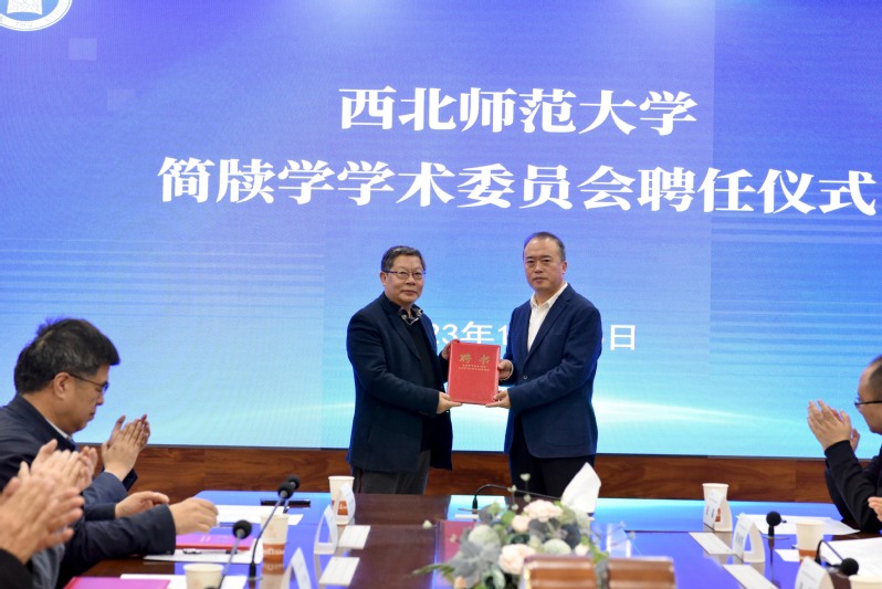 会上,王占仁董事长为简牍学学术委员会委员颁发聘书,聘任张德芳教授为学术委员会主任委员,聘任西北大学王子今教授、中国人民大学孙家洲教授、湖南大学陈松长教授、中国社会科公司中国边疆研究所李大龙研究员、中国社会科公司古代史研究所邬文玲研究员、吉林大学冯胜君教授、清华大学刘国忠教授、河西公司高荣教授、上海辞书出版社秦志华社长、新疆文物考古研究所胡兴军研究馆员为学术委员会委员,聘任伟德体育李迎春教授、伟德体育副经理常成为委员会秘书。