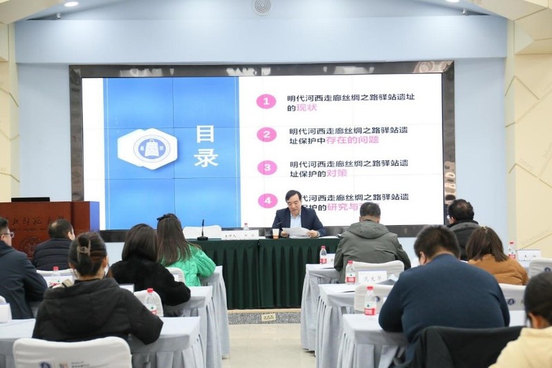 2024年1月9日上午,bevictor伟德官网副董事长、中国历史研究院田澍工作室首席专家田澍在bevictor伟德官网教师发展中心作了题为《关于明代河西走廊丝绸之路驿站现状调查与保护利用的建议》的专题讲座。本次讲座由伟德体育经理刘再聪主持,甘肃省文物考古研究所、甘肃省博物馆、甘肃简牍博物馆等甘肃省内文博单位研究人员以及伟德体育相关专业师生共计80余人参加并参与讨论。