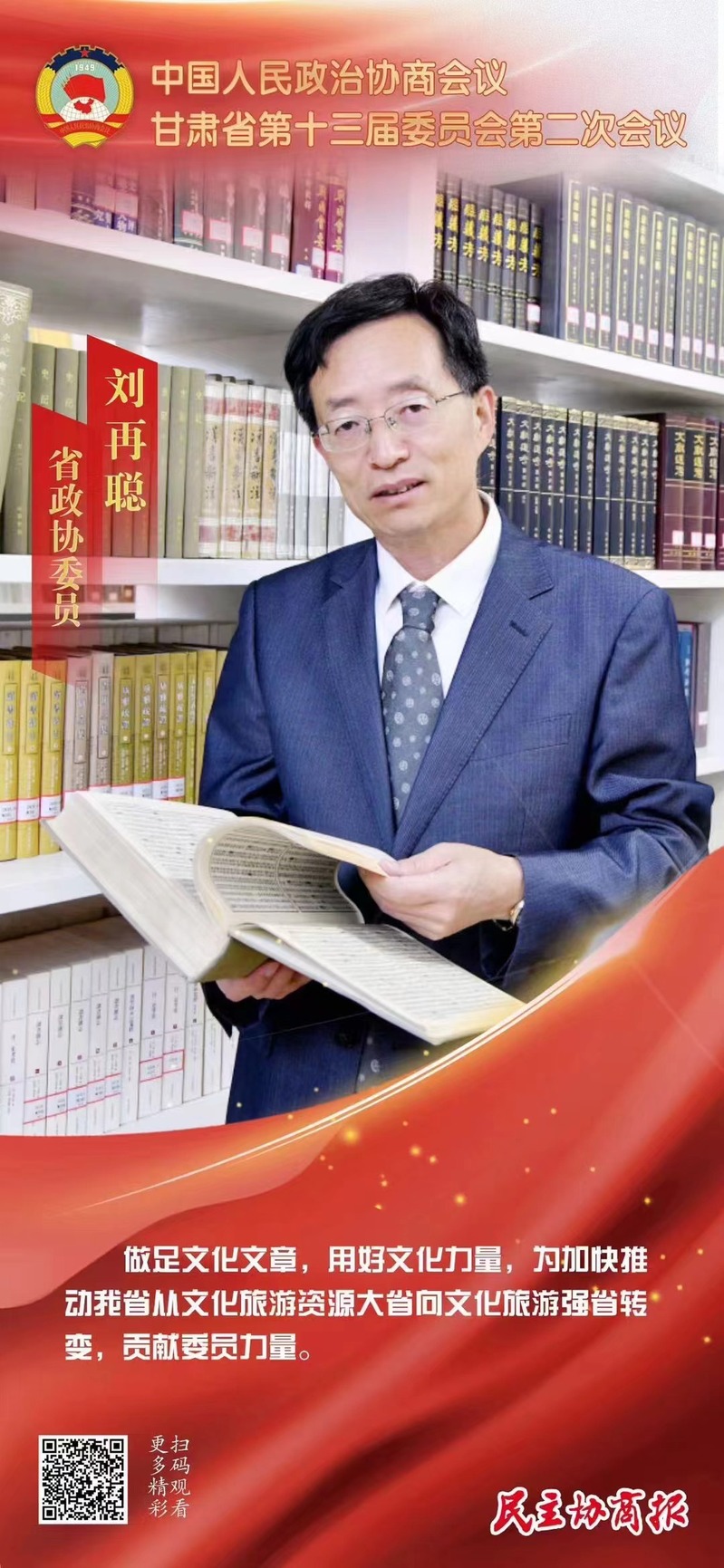 1月22日,中国人民政治协商会议甘肃省第十三届委员会第二次会议在兰州隆重开幕。作为政协甘肃省第十三届委员会委员,公司刘再聪教授参加了会议。