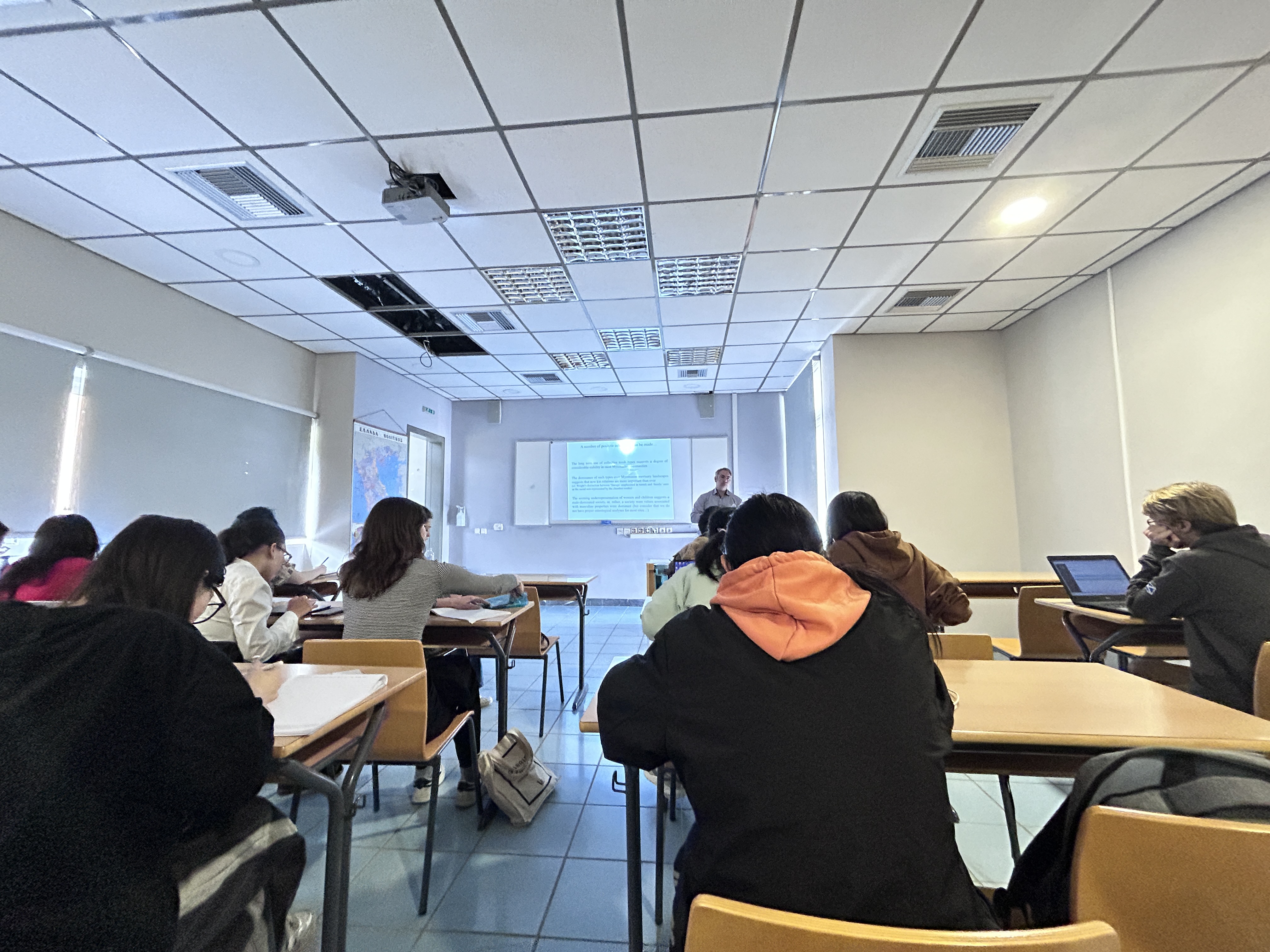 顺利抵达雅典大学后,雅典大学哲学公司悠久的历史、浓郁的学术氛围,《爱琴海文明》《迈锡尼考古学》《希腊城邦史》《古代希腊艺术史》等丰富的课程设置,令同学们感到异常充实。仅仅一节《迈锡尼考古学》的课程体验,令大家充分领略到迈锡尼文明在古希腊历史上的重要性和独特性,它的建筑、艺术和文字成就令人惊叹不已。而《荷马史诗》中关于迈锡尼的描述,更让大家对这个神秘而壮丽的古典文明充满想象。