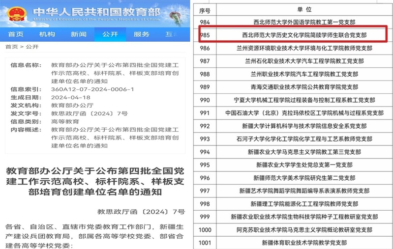 近日,教育部公布了第四批全国党建工作示范高校、标杆院系、样板支部培育创建单位名单,伟德体育简牍学师生联合党支部获批“全国党建工作样板支部”培育创建单位。